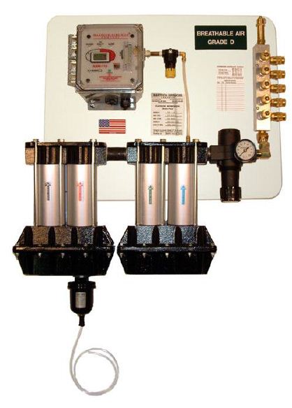 The broad band, Analog Display, monitor continuously samples the supplied breathing air for OSHA compliance.
